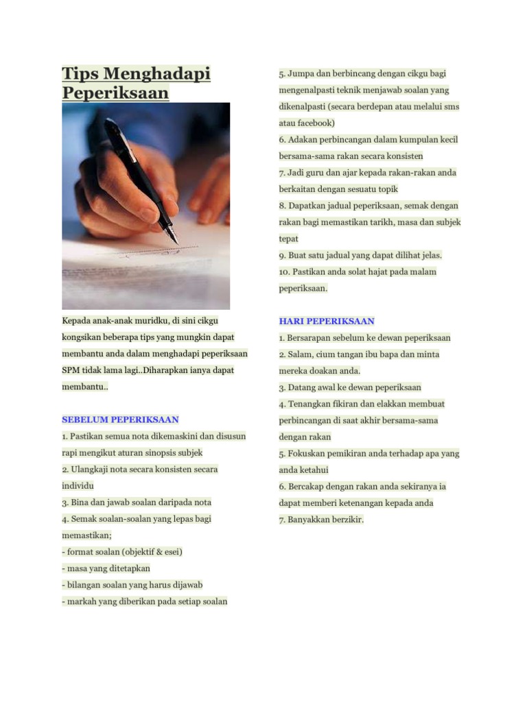 Tips Belajar M Ingat Exam Buat Nota Secara Efisien Pdf